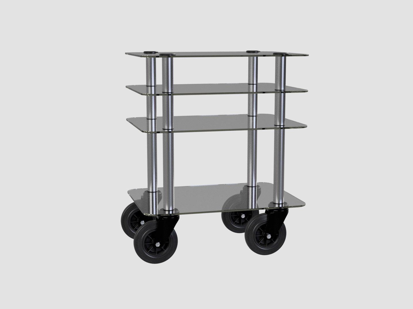 La struttura con tubi in acciaio inox AISI 304 satinato è sostenuta da 4 ruote piroettanti in gomma.