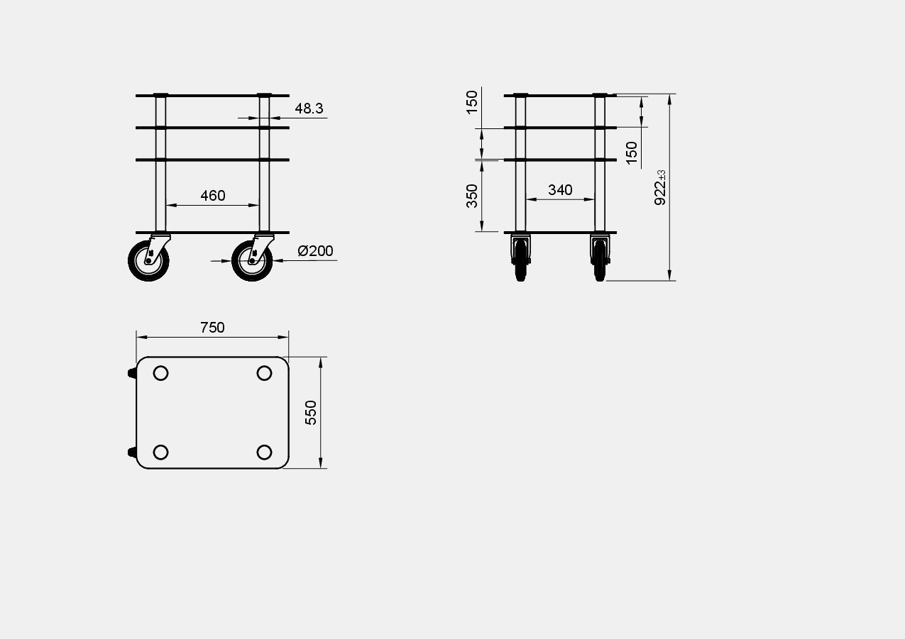 Il supporto delle ruote è in acciaio zincato con verniciatura epossidica nera ad alta resistenza.