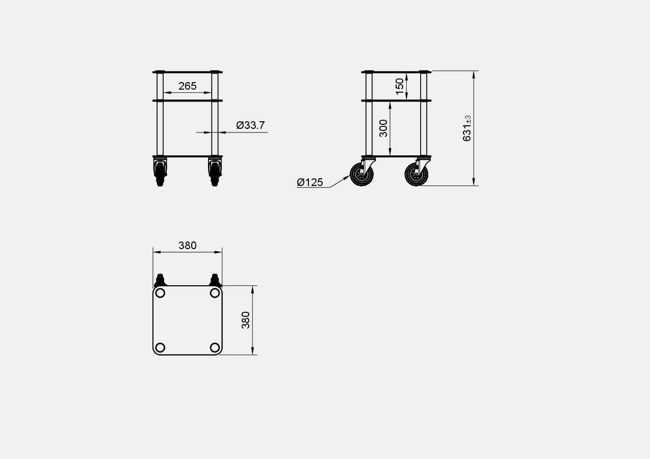 Il supporto delle ruote è in acciaio zincato con verniciatura epossidica nera ad alta resistenza.