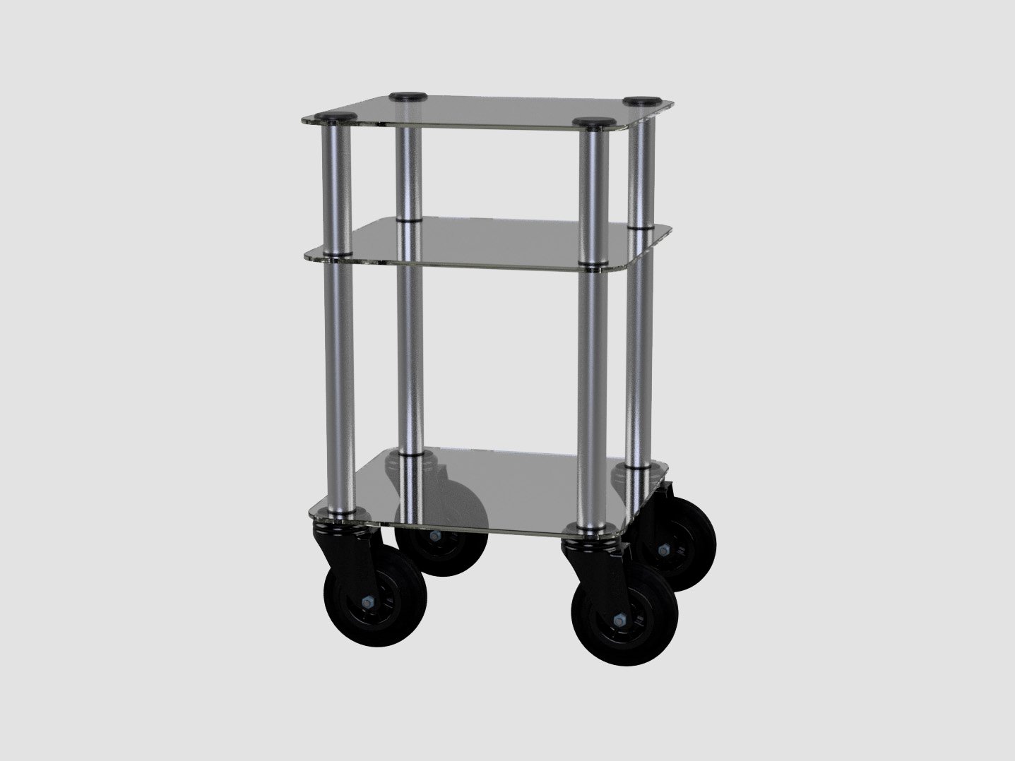 La struttura con tubi in acciaio inox AISI 304 satinato è sostenuta da 4 ruote piroettanti in gomma.