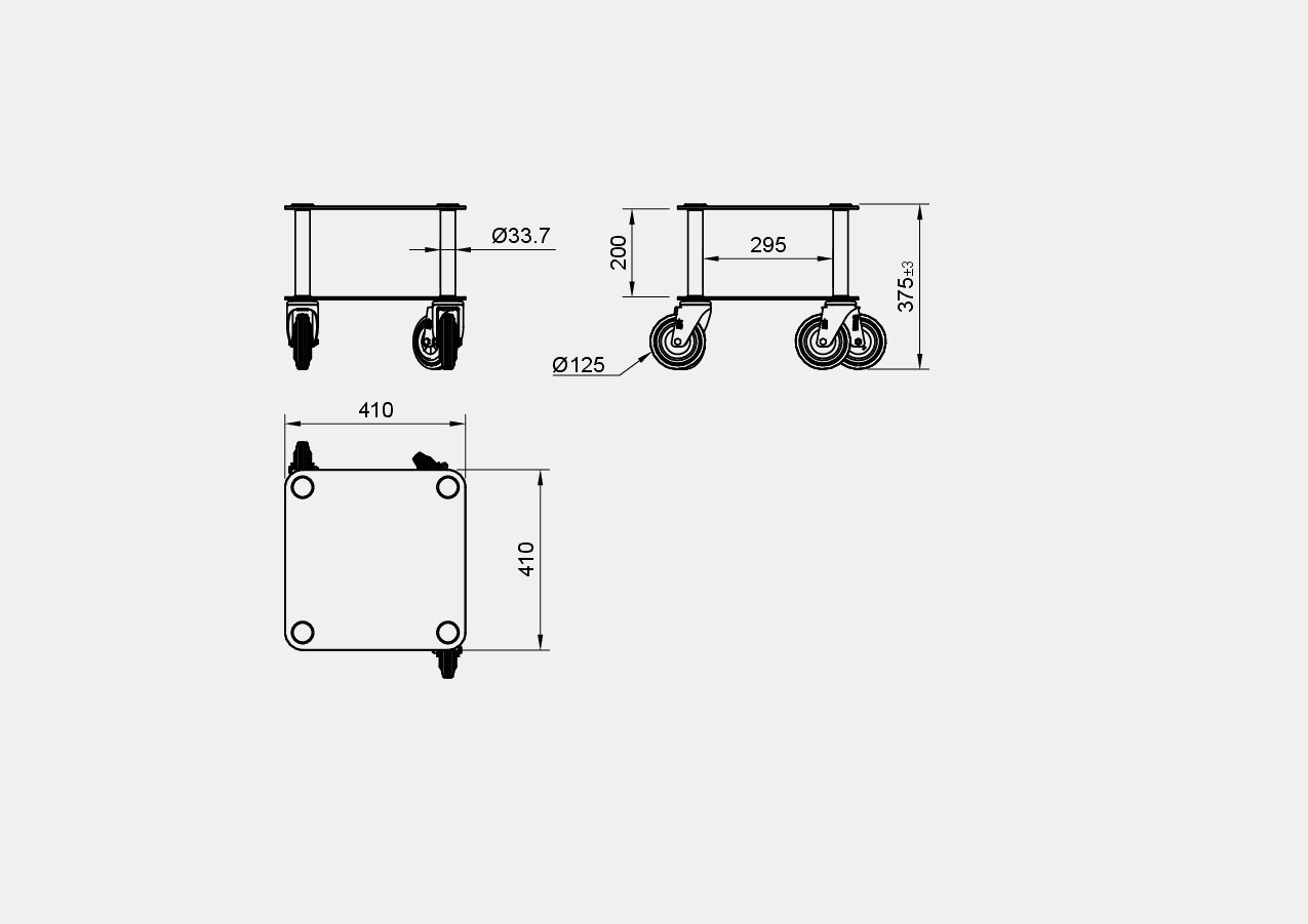 Il supporto delle ruote è in acciaio zincato con verniciatura epossidica nera ad alta resistenza.