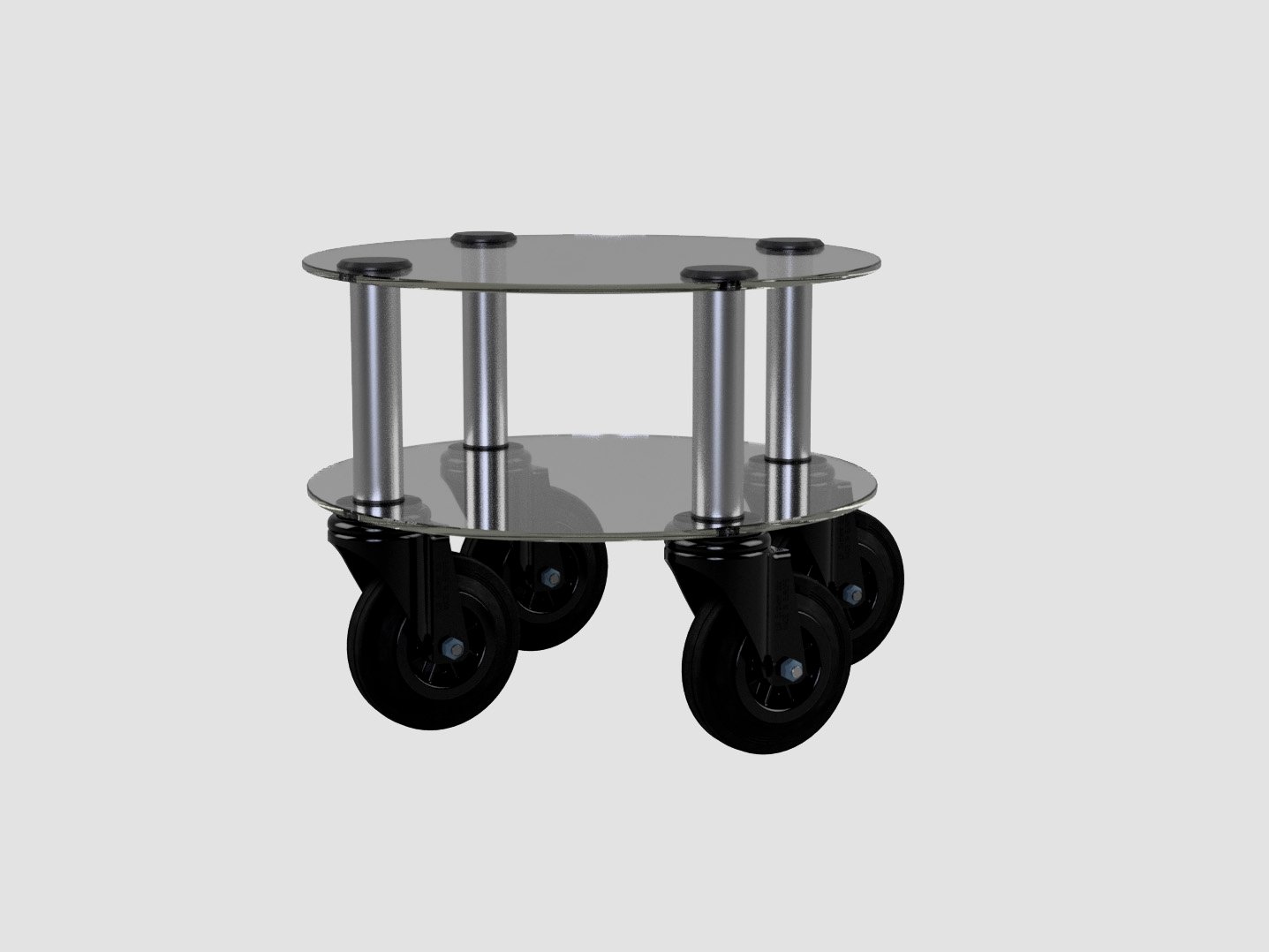 The frame, made of satin-finish AISI 304 stainless steel tubes, is supported by four rubber swivel casters.