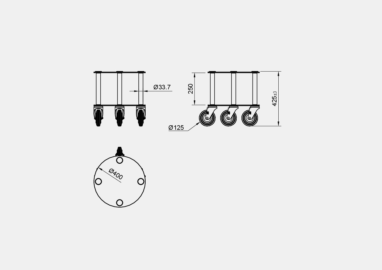 Il supporto delle ruote è in acciaio zincato con verniciatura epossidica nera ad alta resistenza.